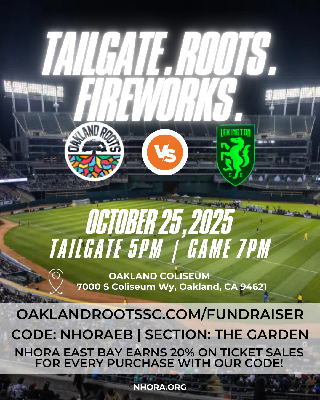 Join NHORA East Bay for an unforgettable night with the Oakland Roots as they take on Lexington SC!